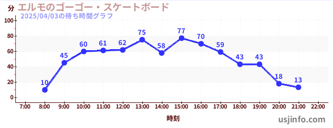 • エルモのゴーゴー・スケートボード$B$N(B2025年04月03日の待ち時間