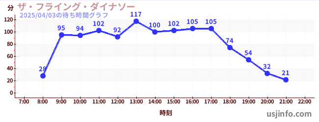 • ザ・フライング・ダイナソー$B$N(B2025年04月03日の待ち時間
