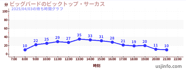 • ビッグバードのビックトップ・サーカス$B$N(B2025年04月03日の待ち時間
