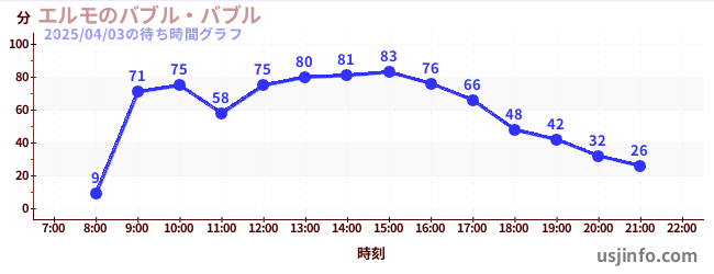 • エルモのバブル・バブル$B$N(B2025年04月03日の待ち時間