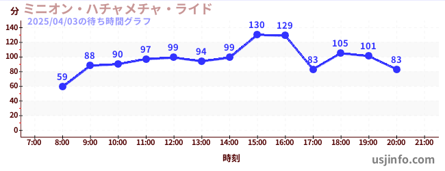 • ミニオン・ハチャメチャ・ライド$B$N(B2025年04月03日の待ち時間
