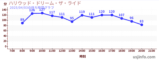 • ハリウッド・ドリーム・ザ・ライド$B$N(B2025年04月03日の待ち時間