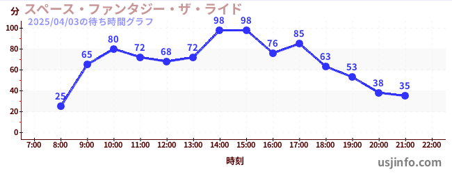 • スペース・ファンタジー・ザ・ライド$B$N(B2025年04月03日の待ち時間