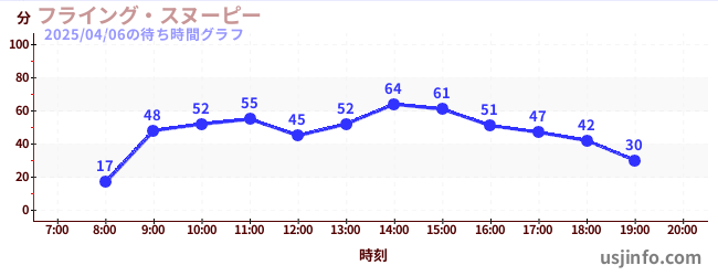 • フライング・スヌーピー$B$N(B2025年04月06日の待ち時間