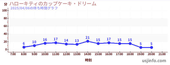 • ハローキティのカップケーキ・ドリーム$B$N(B2025年04月06日の待ち時間