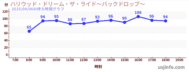 • ハリウッド・ドリーム・ザ・ライド〜バックドロップ〜$B$N(B2025年04月06日の待ち時間