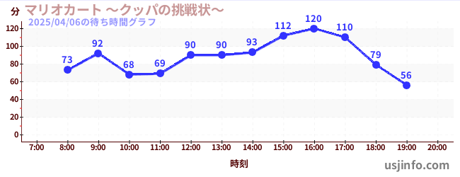 • マリオカート ~クッパの挑戦状~$B$N(B2025年04月06日の待ち時間