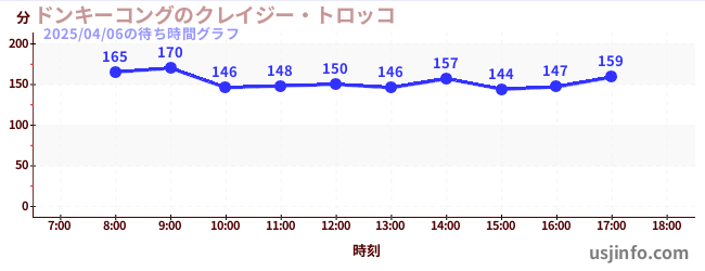 • ドンキーコングのクレイジー・トロッコ$B$N(B2025年04月06日の待ち時間