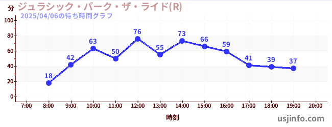 • ジュラシック・パーク・ザ・ライド(R)$B$N(B2025年04月06日の待ち時間