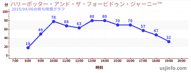 • ハリーポッター・アンド・ザ・フォービドゥン・ジャーニー™$B$N(B2025年04月06日の待ち時間