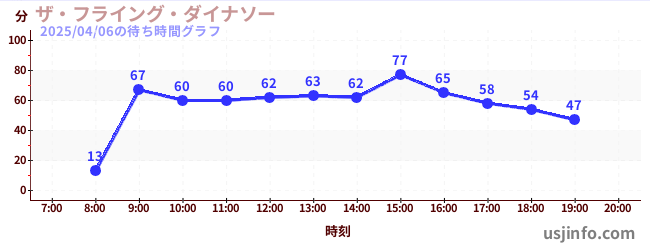 • ザ・フライング・ダイナソー$B$N(B2025年04月06日の待ち時間