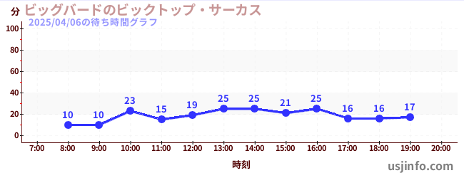 • ビッグバードのビックトップ・サーカス$B$N(B2025年04月06日の待ち時間