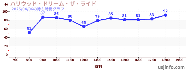 • ハリウッド・ドリーム・ザ・ライド$B$N(B2025年04月06日の待ち時間