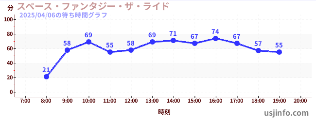 • スペース・ファンタジー・ザ・ライド$B$N(B2025年04月06日の待ち時間