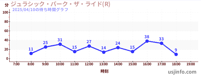 • ジュラシック・パーク・ザ・ライド(R)$B$N(B2025年04月10日の待ち時間