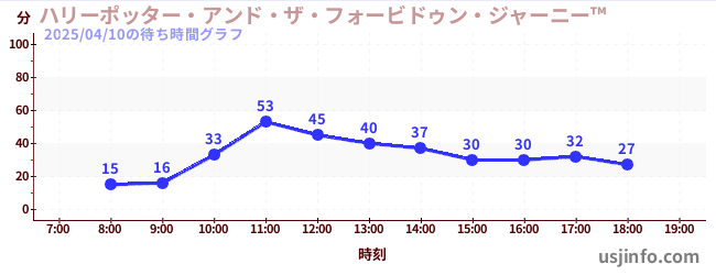 • ハリーポッター・アンド・ザ・フォービドゥン・ジャーニー™$B$N(B2025年04月10日の待ち時間