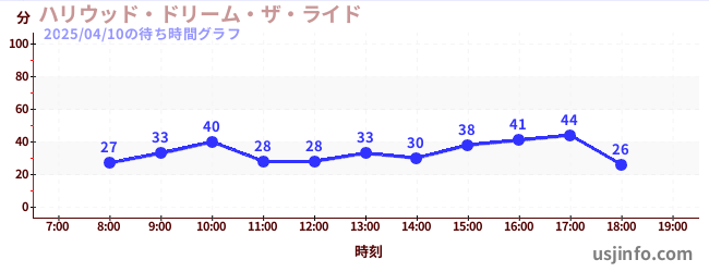 • ハリウッド・ドリーム・ザ・ライド$B$N(B2025年04月10日の待ち時間