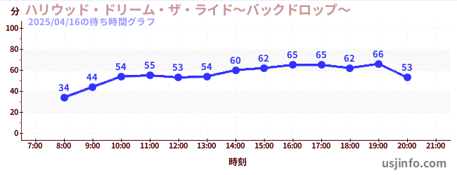• ハリウッド・ドリーム・ザ・ライド〜バックドロップ〜$B$N(B2025年04月16日の待ち時間