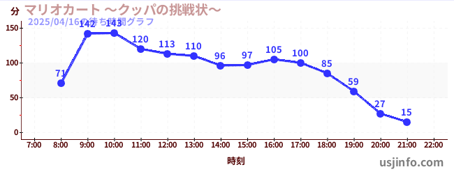 • マリオカート ~クッパの挑戦状~$B$N(B2025年04月16日の待ち時間