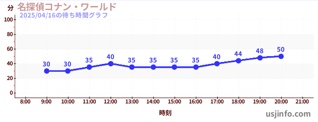 • 名探偵コナン・ワールド$B$N(B2025年04月16日の待ち時間