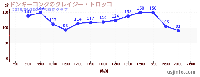 • ドンキーコングのクレイジー・トロッコ$B$N(B2025年04月16日の待ち時間