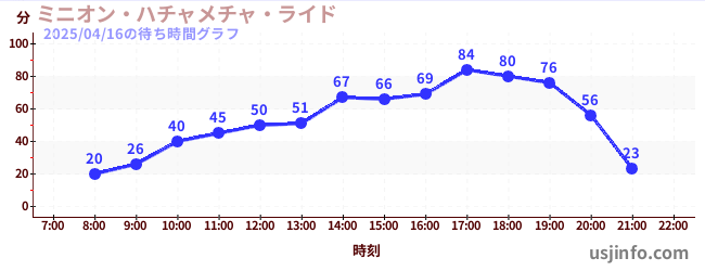 • ミニオン・ハチャメチャ・ライド$B$N(B2025年04月16日の待ち時間