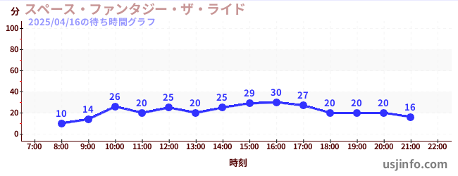 • スペース・ファンタジー・ザ・ライド$B$N(B2025年04月16日の待ち時間