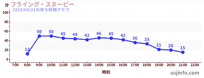 • フライング・スヌーピー$B$N(B2025年04月21日の待ち時間