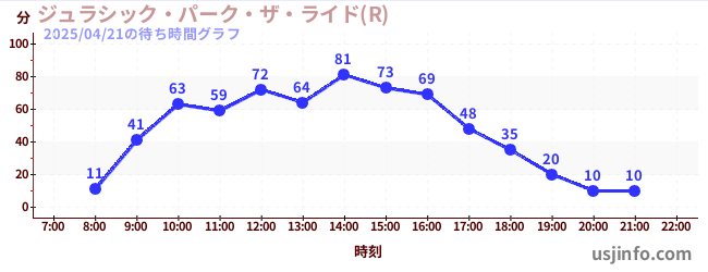 • ジュラシック・パーク・ザ・ライド(R)$B$N(B2025年04月21日の待ち時間