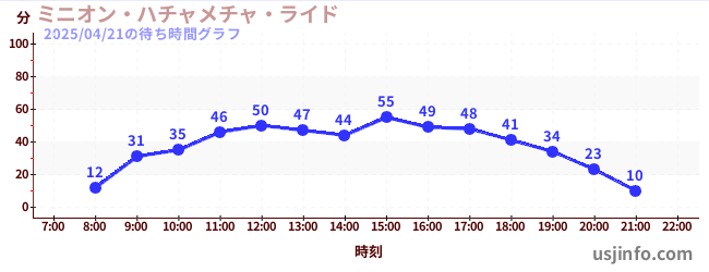 • ミニオン・ハチャメチャ・ライド$B$N(B2025年04月21日の待ち時間