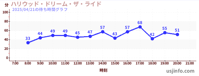 • ハリウッド・ドリーム・ザ・ライド$B$N(B2025年04月21日の待ち時間