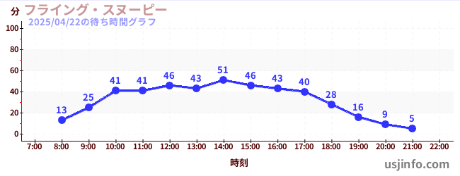 • フライング・スヌーピー$B$N(B2025年04月22日の待ち時間