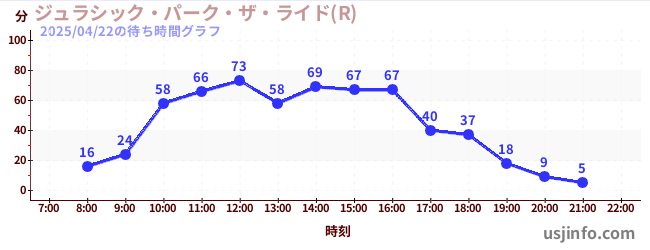 • ジュラシック・パーク・ザ・ライド(R)$B$N(B2025年04月22日の待ち時間