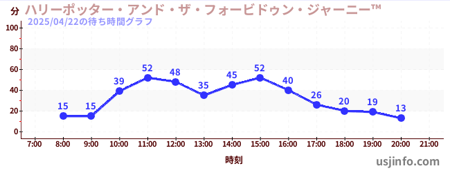 • ハリーポッター・アンド・ザ・フォービドゥン・ジャーニー™$B$N(B2025年04月22日の待ち時間