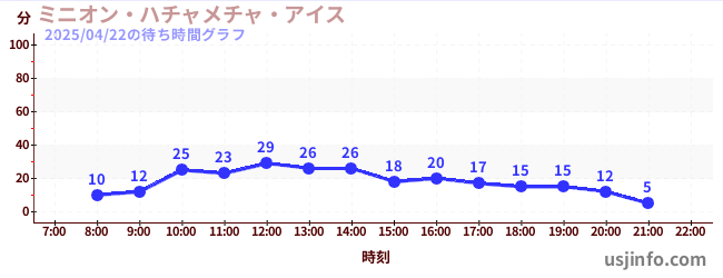 • ミニオン・ハチャメチャ・ライド$B$N(B2025年04月22日の待ち時間