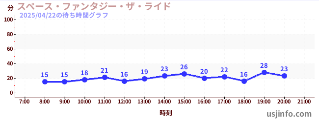 • スペース・ファンタジー・ザ・ライド$B$N(B2025年04月22日の待ち時間