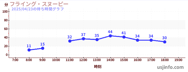 • フライング・スヌーピー$B$N(B2025年04月23日の待ち時間