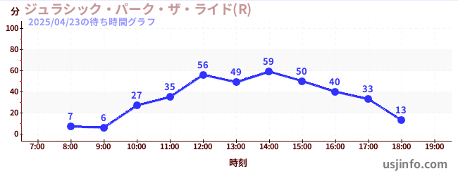 • ジュラシック・パーク・ザ・ライド(R)$B$N(B2025年04月23日の待ち時間