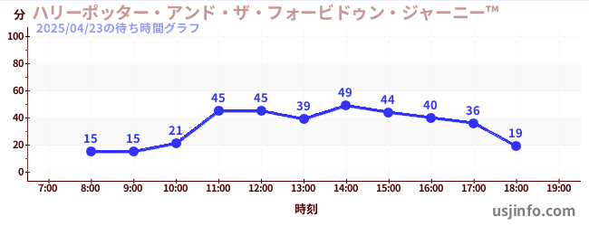 • ハリーポッター・アンド・ザ・フォービドゥン・ジャーニー™$B$N(B2025年04月23日の待ち時間
