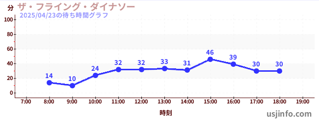 • ザ・フライング・ダイナソー$B$N(B2025年04月23日の待ち時間