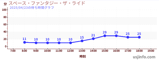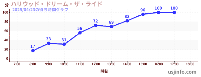 • ハリウッド・ドリーム・ザ・ライド$B$N(B2025年04月23日の待ち時間