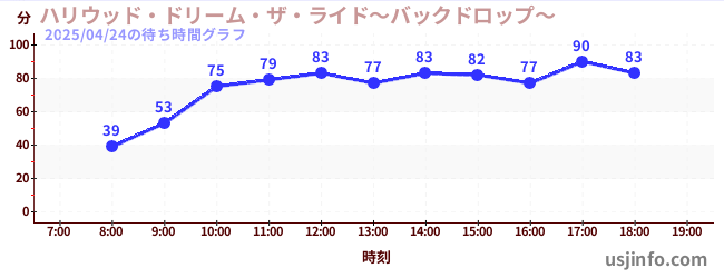 • ハリウッド・ドリーム・ザ・ライド〜バックドロップ〜$B$N(B2025年04月24日の待ち時間