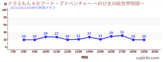 • ドラえもん 4-D アート・アドベンチャー ~のび太の絵世界物語~$B$N(B2025年04月24日の待ち時間
