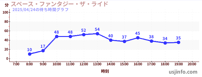 • スペース・ファンタジー・ザ・ライド$B$N(B2025年04月24日の待ち時間