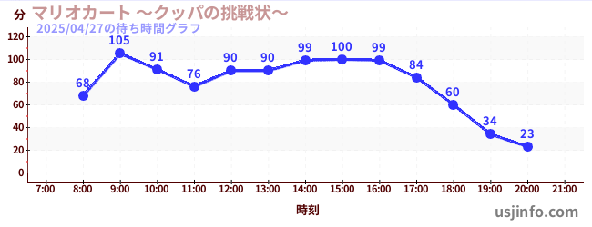 • マリオカート ~クッパの挑戦状~$B$N(B2025年04月27日の待ち時間
