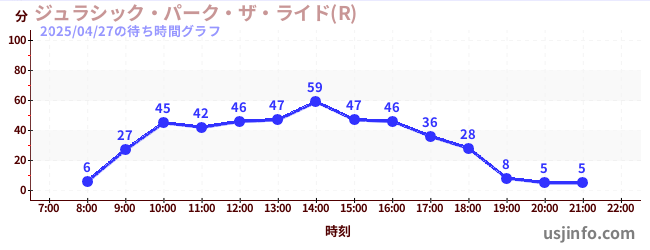 • ジュラシック・パーク・ザ・ライド(R)$B$N(B2025年04月27日の待ち時間