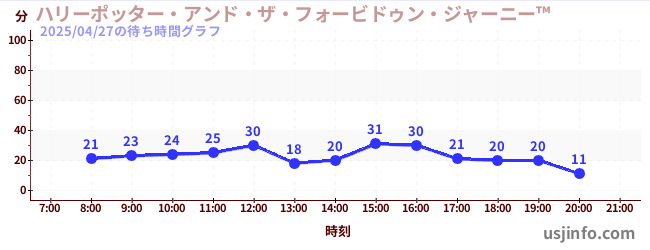 • ハリーポッター・アンド・ザ・フォービドゥン・ジャーニー™$B$N(B2025年04月27日の待ち時間