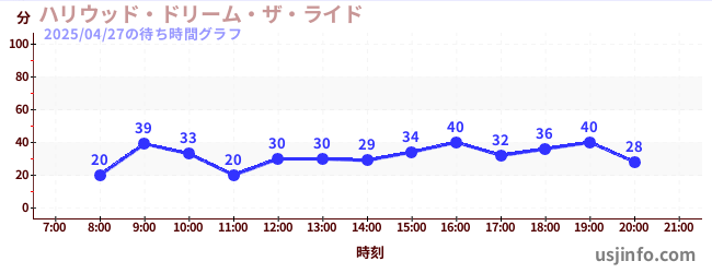 • ハリウッド・ドリーム・ザ・ライド$B$N(B2025年04月27日の待ち時間