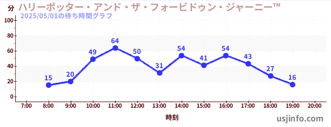 • ハリーポッター・アンド・ザ・フォービドゥン・ジャーニー™$B$N(B2025年05月01日の待ち時間