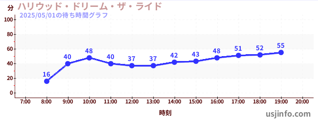 • ハリウッド・ドリーム・ザ・ライド〜バックドロップ〜$B$N(B2025年05月01日の待ち時間